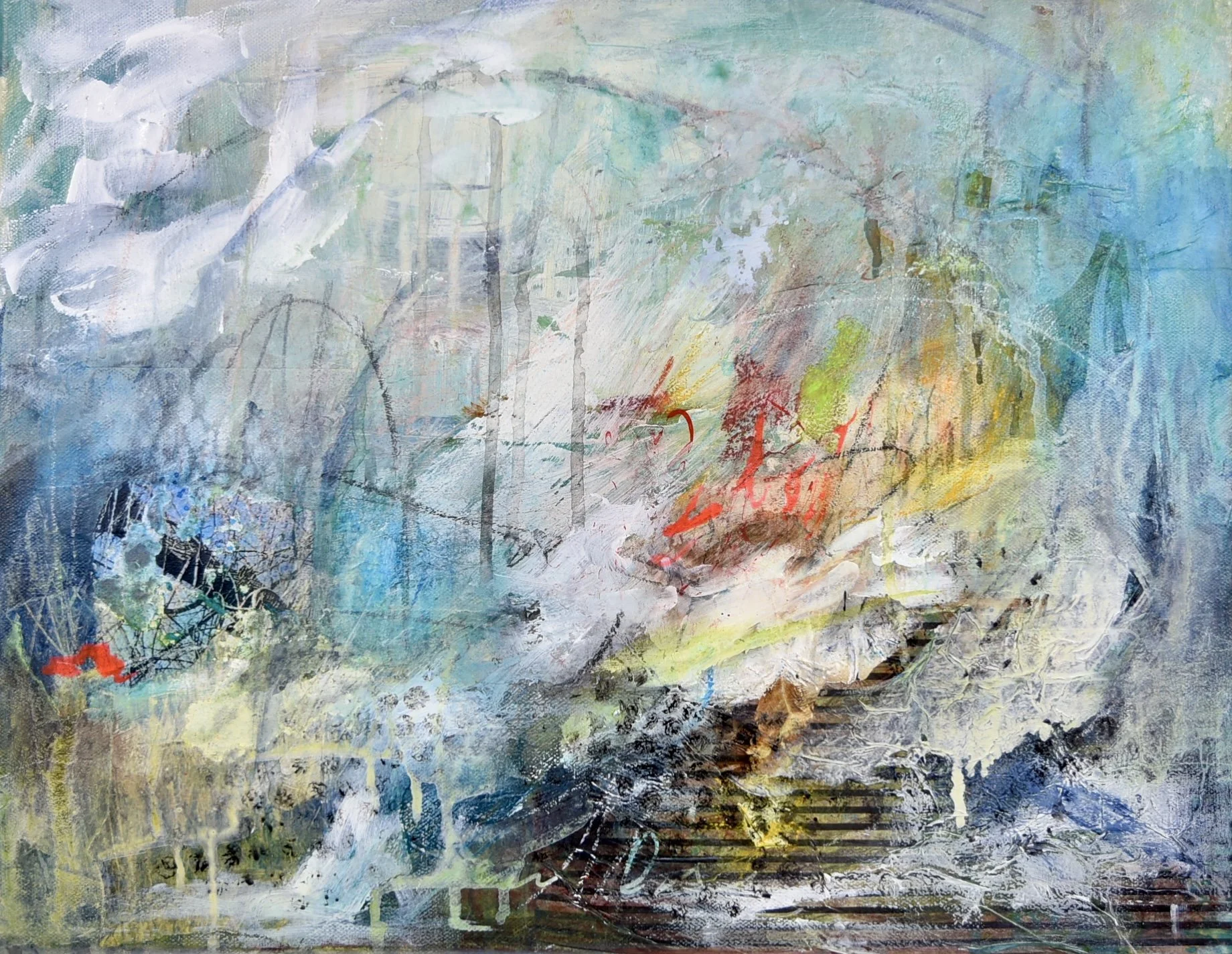 I work spontaneously, I remain entirely open to the possibilities and respond to the evolving piece I am creating. I approach each art piece as a playful exercise of a series of "what-ifs." I enjoy experimenting with different materials, and not having a clear destination in mind allows me to try things without worries. Most of the time, I do not have a clear destination. I prefer to start my work using fluid mediums, such as inks and watery acrylics, as this gives me the least control. It helps me to tap into my subconscious, allowing creativity to flow through while blocking, as much as possible, the logical and analytical side. This process allows me to respond emotionally to the textures, marks and colours I place in each layer and make adjustments based on how I feel about them. In the process, reminiscence happens, and those stories get told on the substrate, resulting in semi-abstract/abstract landscapes. When creating portraits in contemporary collages, I spend a great amount of time reviewing images from magazines and old books, envisioning how to transform them into parts of that portrait. During this process, personal and emotionally charged stories resurface and are translated into the decisions I make when putting it all together. Recently, portraits have evolved into semi-abstract figurative paintings. I do not like “pretty” or “girly”; my women are persistent and resilient, with struggles and hopes. Above all, each of them has something to say.